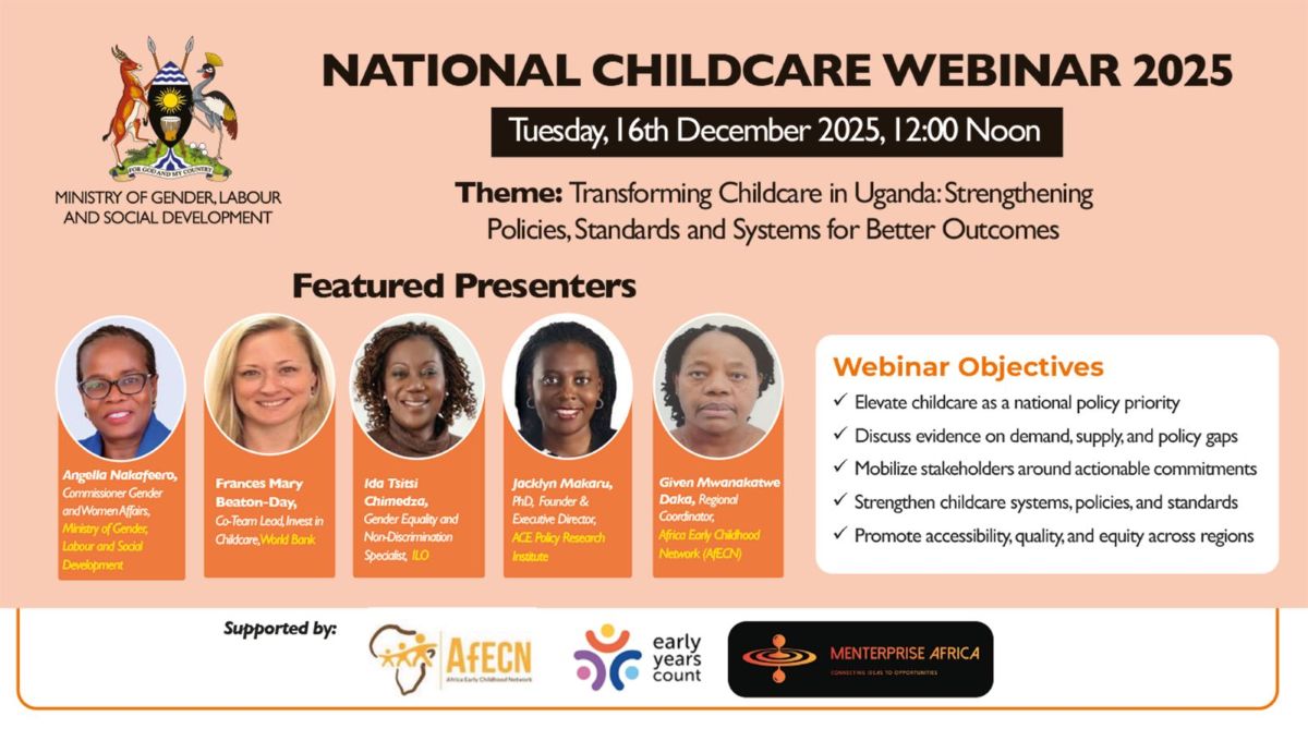 Consequently, the Ministry of Gender, Labour and Social Development and partners are organising the National Childcare Webinar 2025 to leverage this momentum and evidence to elevate childcare as a priority policy area and mobilise stakeholders around shared commitments to strengthen childcare systems, policies, and standards.